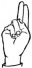 На ћирилици написано БУДИМИР СЛЕПЧЕВИЋ састоји се из 16 слова [?]. Исписано ћириличном једноручном азбуком за глувонеме: